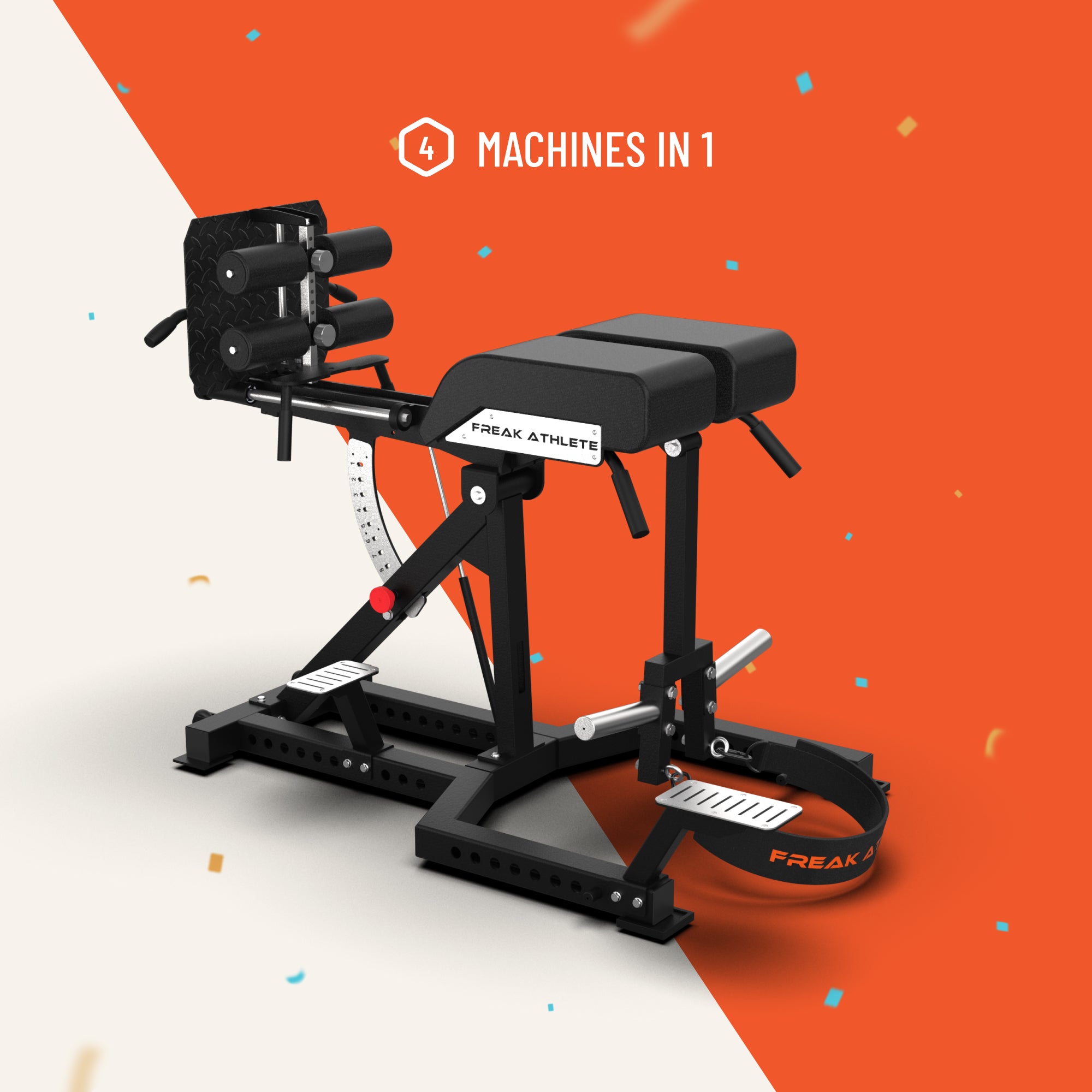 De ultieme commerciële machine voor training van de achterste spierketen. 4 apparaten in 1: GHD, rugextensie, hyperextensie en Nordic bank.