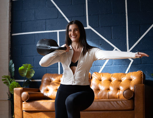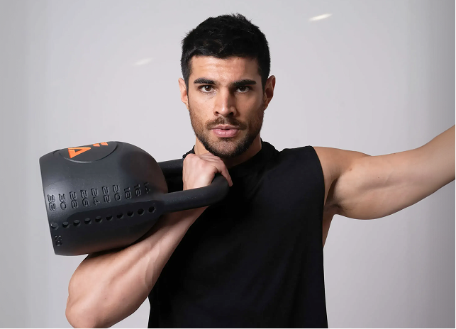 The adjustable kettlebell allows users to change between 12-30kg (26 to 70lb) in seconds.